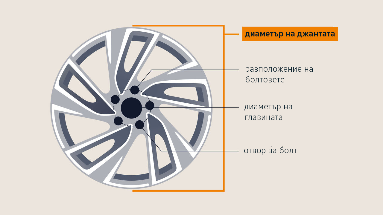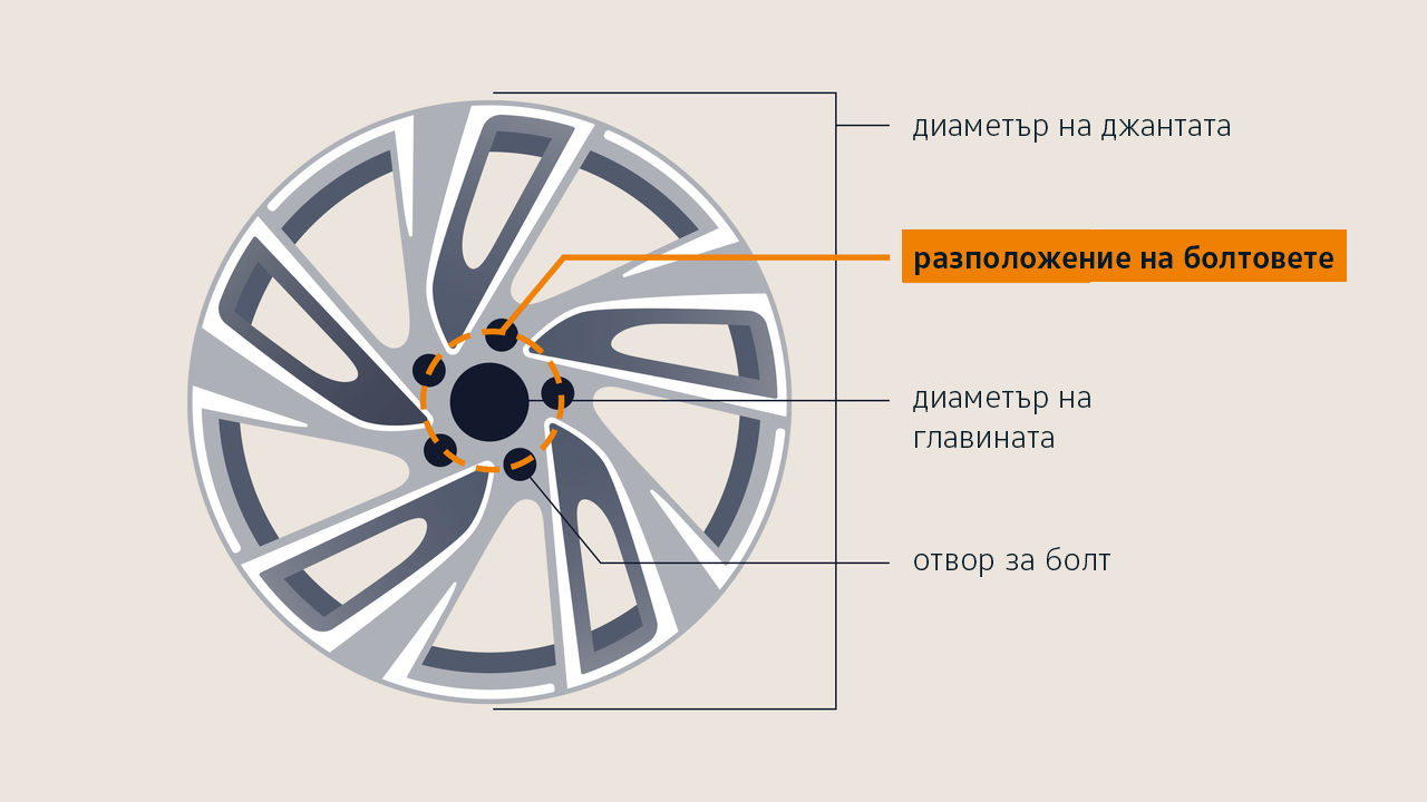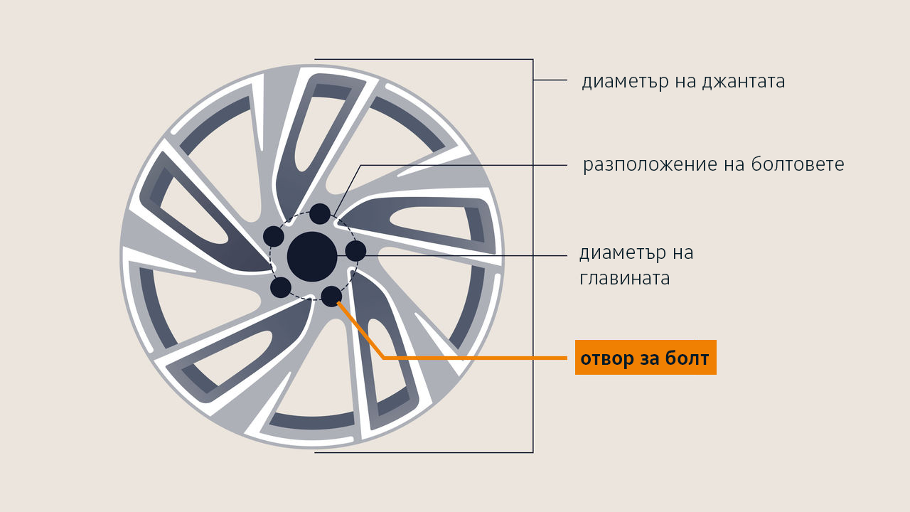 Броят на болтовете, с които джантата се фиксира към главината е различен за всеки автомобил. Броят на използваните болтове на приложеното изображение е 5.