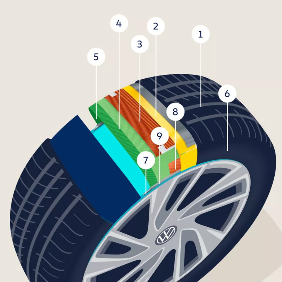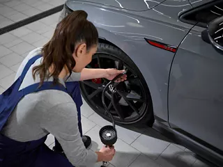Налягането в гумата спада средно с 0,1 bar в рамките на 3 месеца. Ако налягането спада по-бързо, гумата или вентила най-вероятно изпускат. Следете ги и ако имате съмнения се свържете с най-близкия до Вас Volkswagen партньор.